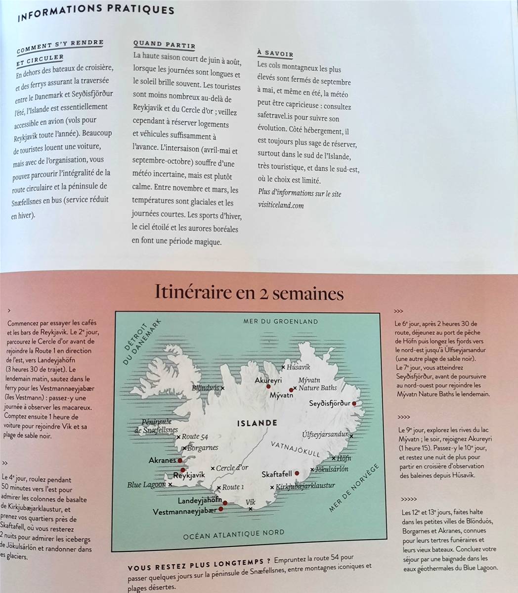 50 particulièrement détaillées, avec des recommandations d'itinéraires, une carte et des informations pratiques (comment s'y rendre, la meilleure période pour voyager)