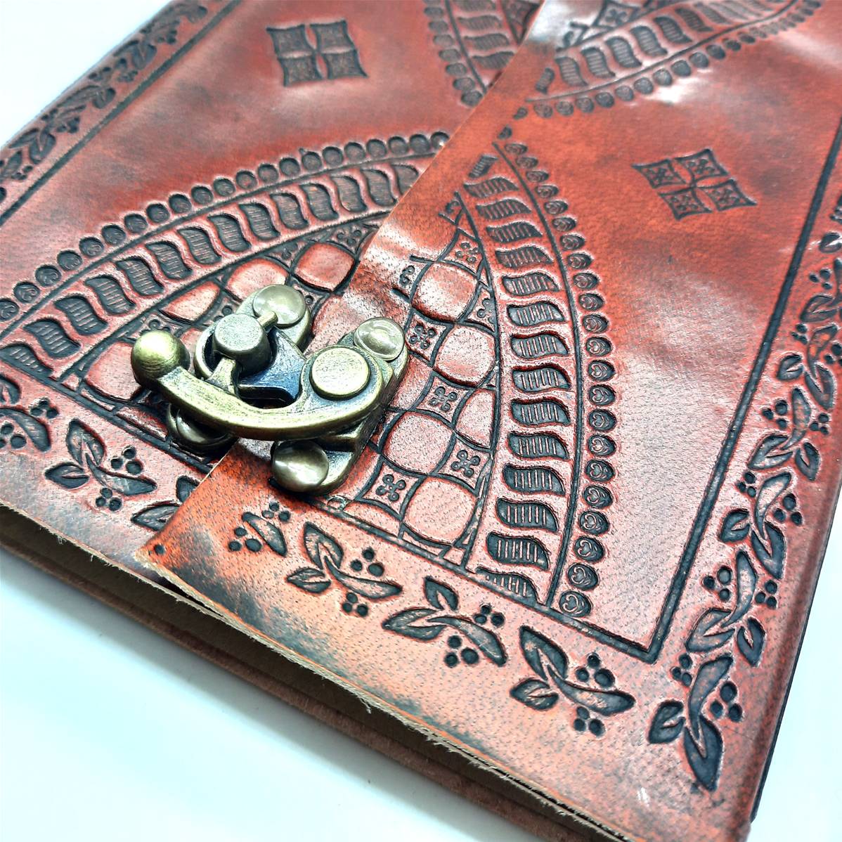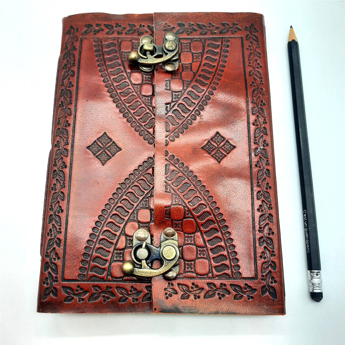 Carnet de voyage en cuir fait main à Jaipur (Inde) – Double crochet métal.