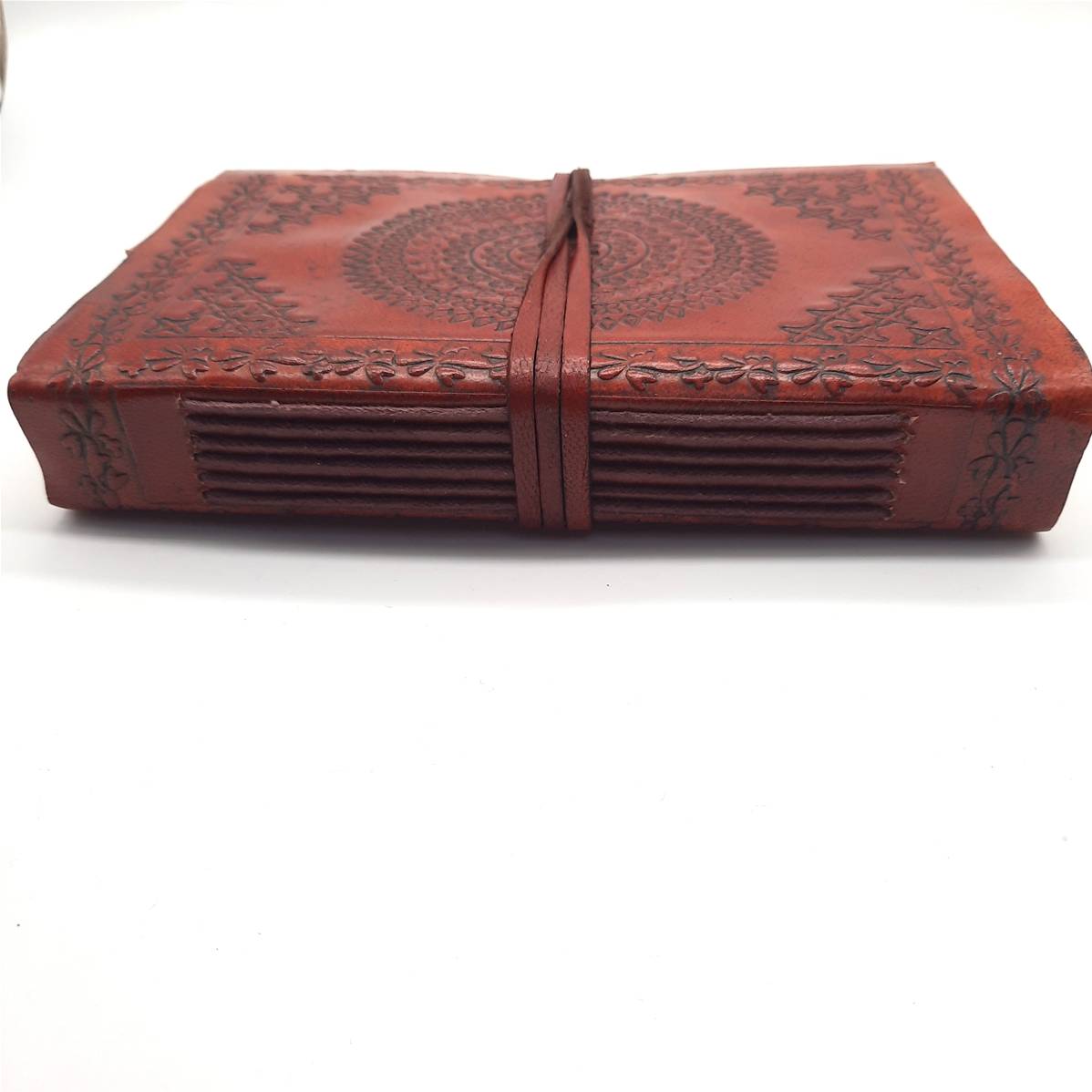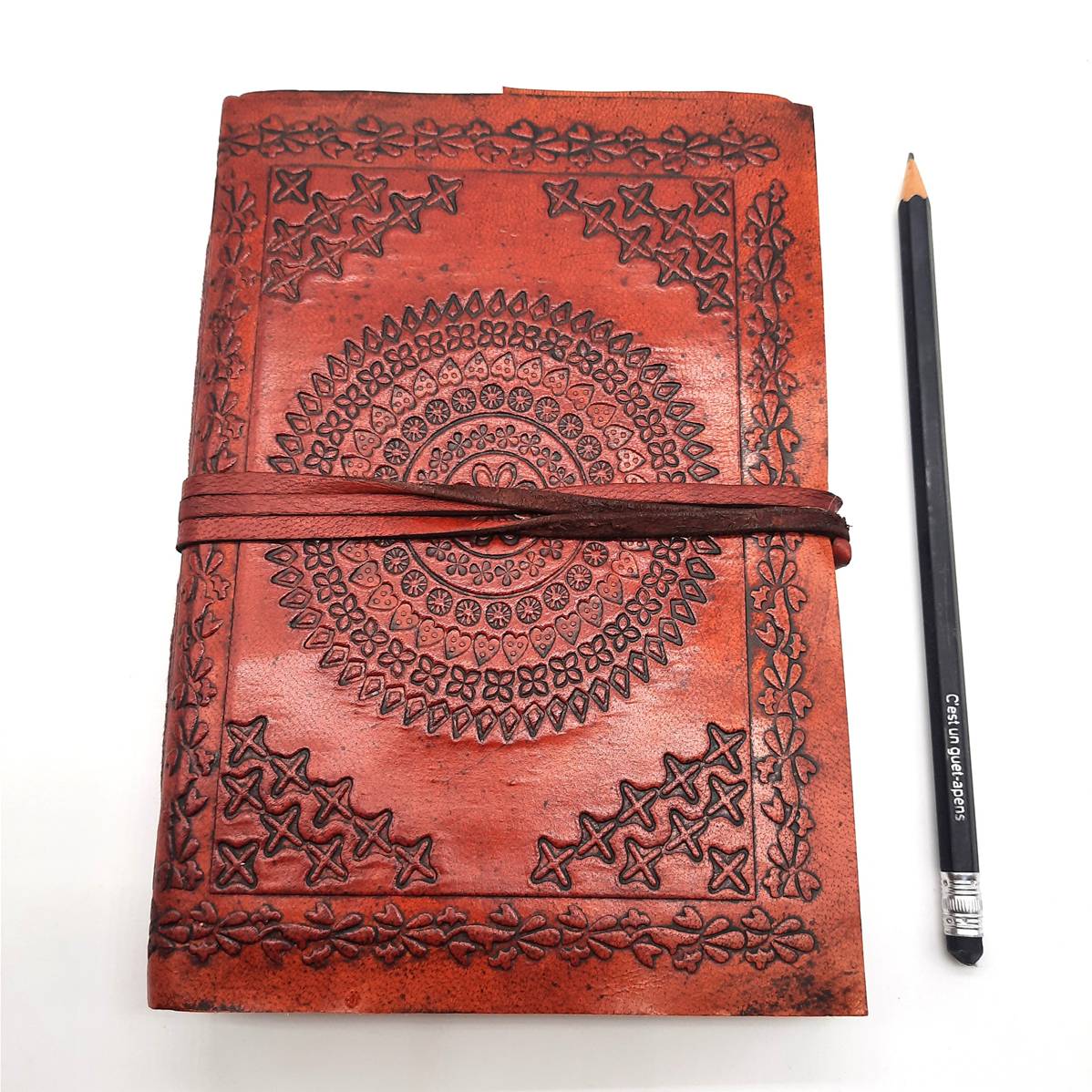 Ce carnet de voyage en cuir est fabriqué à la main à Jaipur (Inde).