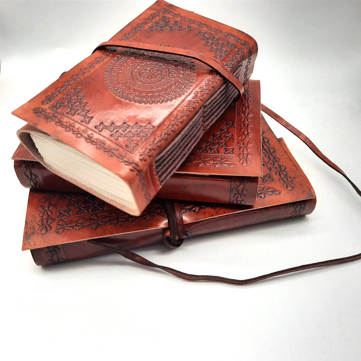 Ce carnet de voyage en cuir est fabriqué à la main par des artisans de Jaipur, en Inde. Chaque pièce est unique, avec des motifs embossés traditionnels et une finition authentique. Réalisé en cuir naturel épais, il est conçu pour durer. Avec le temps, le cuir se patine et devient encore plus beau : c’est tout le charme d’un produit fait main.