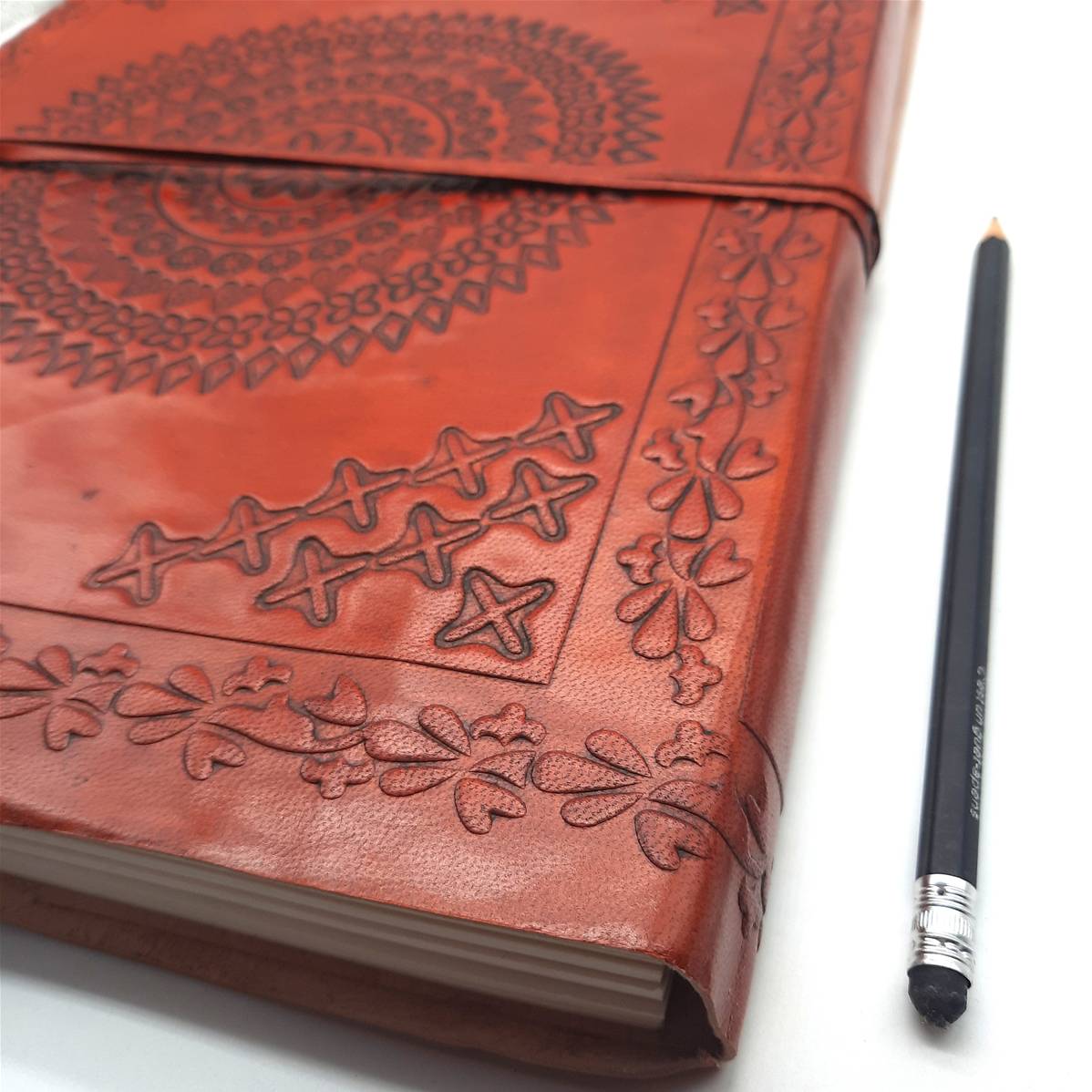 Réalisé en cuir véritable épais et embossé à la main, ce carnet se distingue par sa solidité et son aspect authentique. Le cuir se patine naturellement avec le temps, rendant chaque carnet unique.