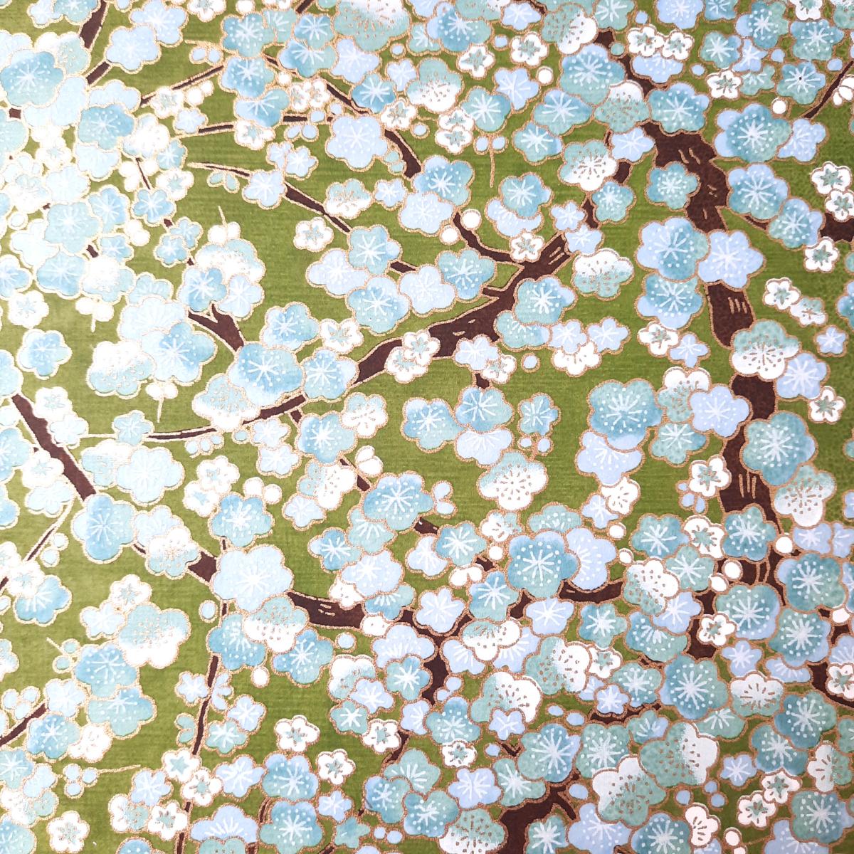 Carnet en papier japonais motifs Branches de cerisiers sur fond vert