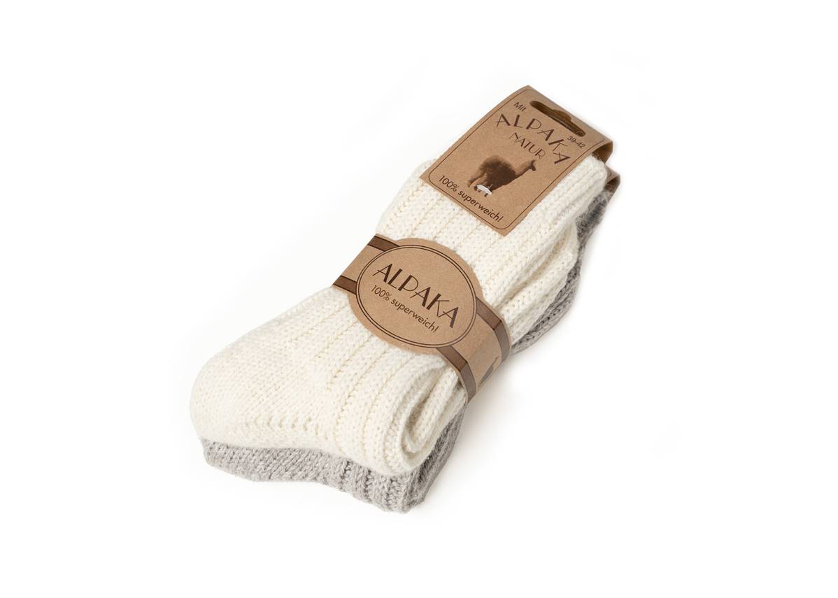 Chaussettes double Laine et Alpaga beige et crème 35-38