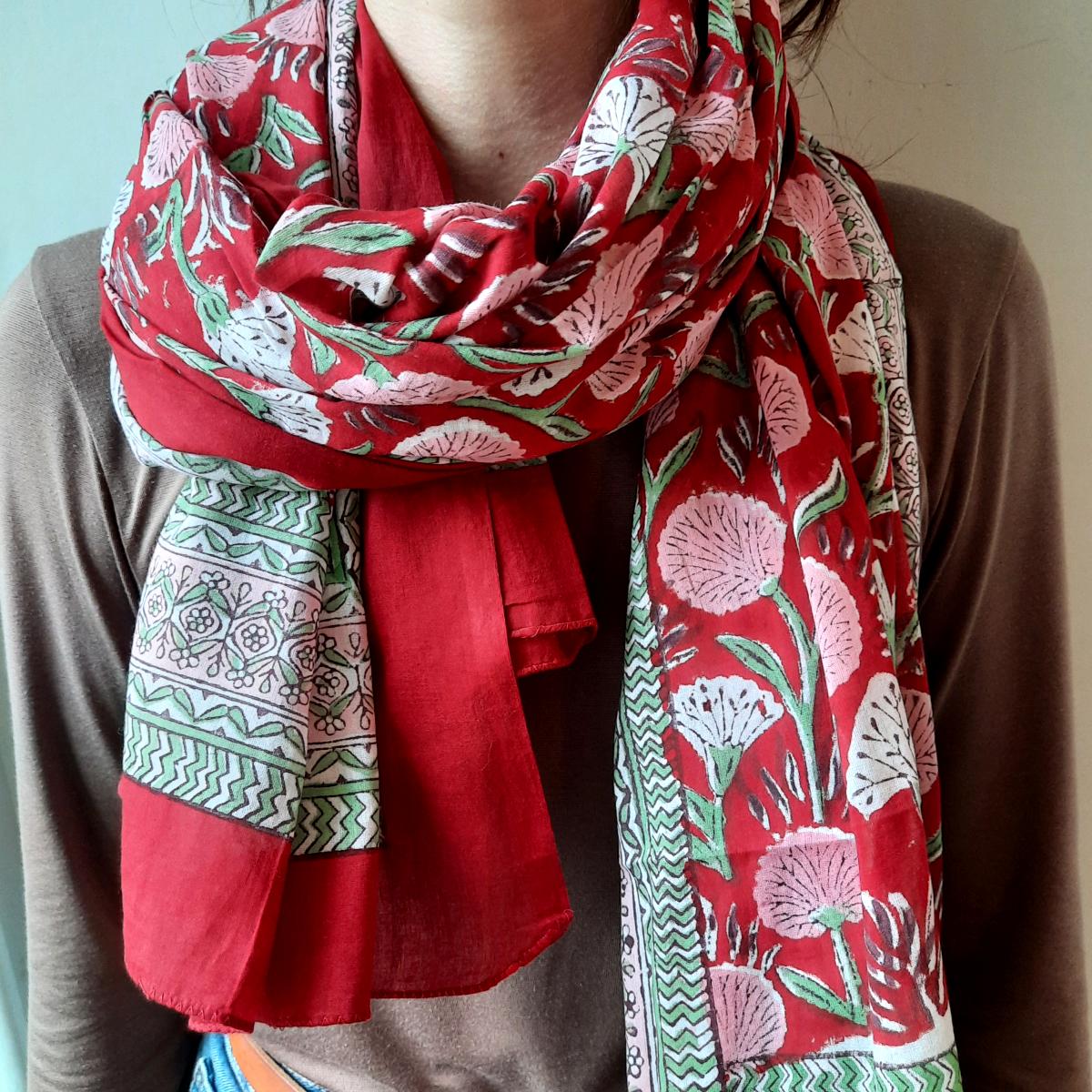 Etole, écharpe ou paréo coton imprimé indien fleuri 2