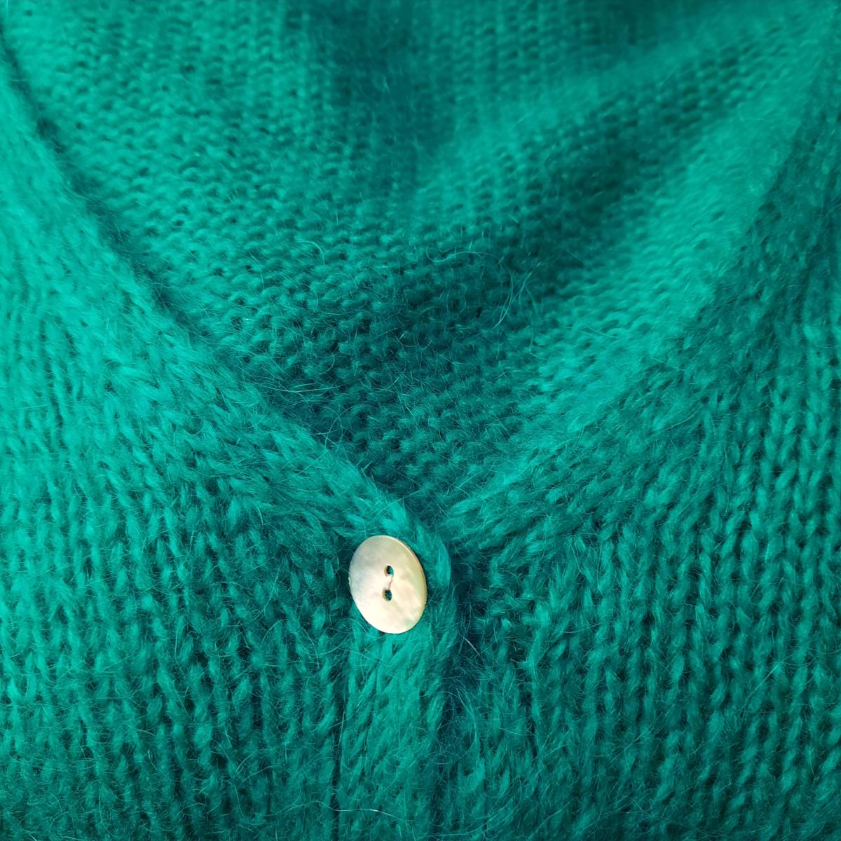 Ce gilet en mohair de couleur vert menthe est à la fois doux, chaud et élégant.