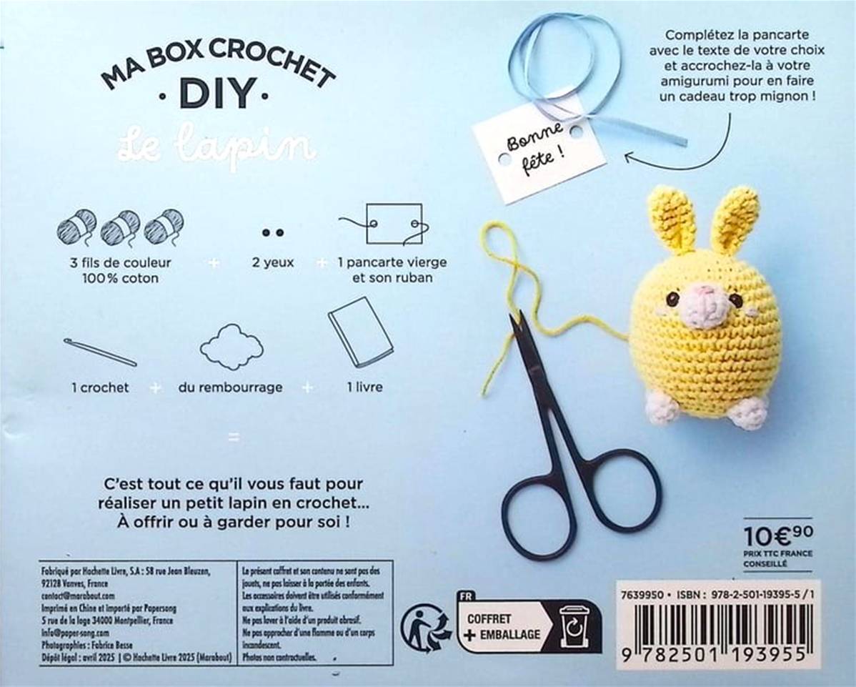 Une box crochet complète et ludique pour créer un adorable lapin en crochet, idéale comme cadeau créatif pour celles et ceux qui apprécient les loisirs DIY et les activités manuelles originales.
