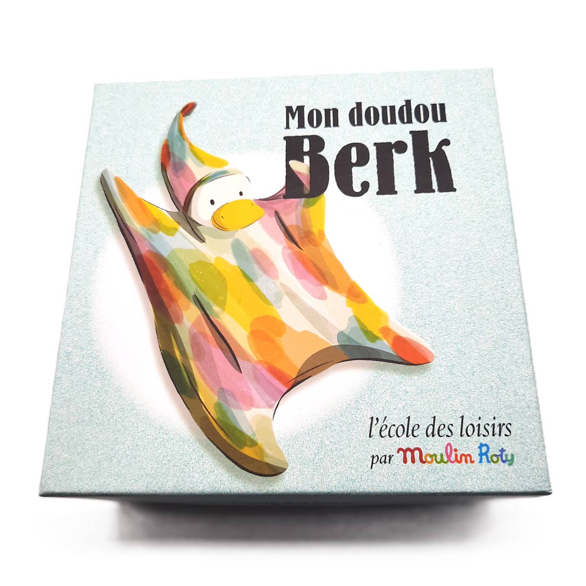 Mon Doudou Berk est un doudou canard craquant, plein de douceur et d’émotion, qui rappelle l’univers chaleureux et rassurant de l’École des Loisirs.