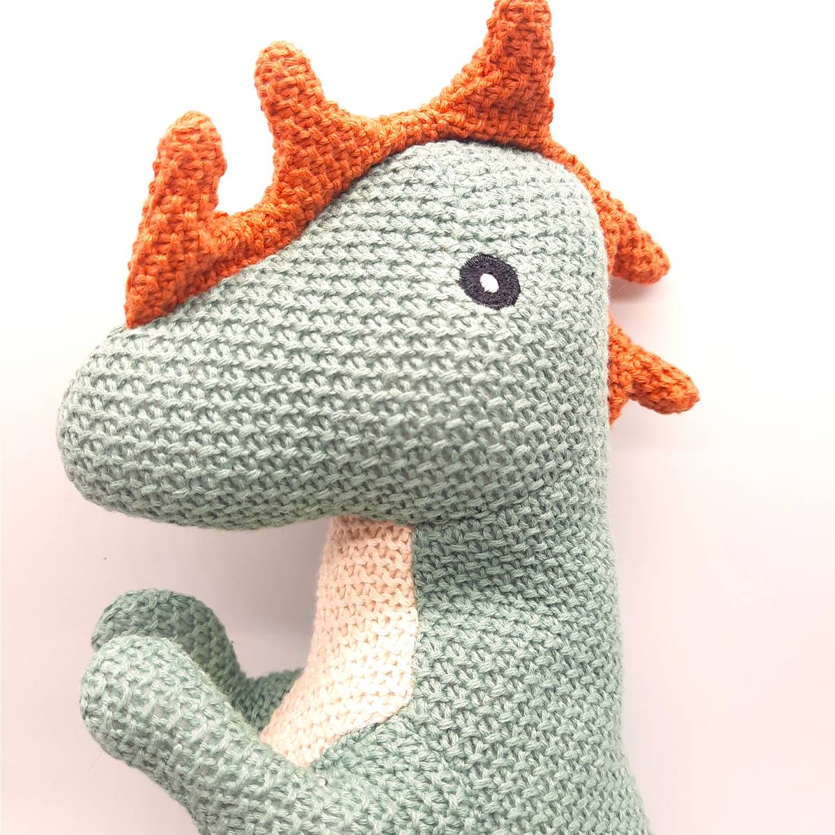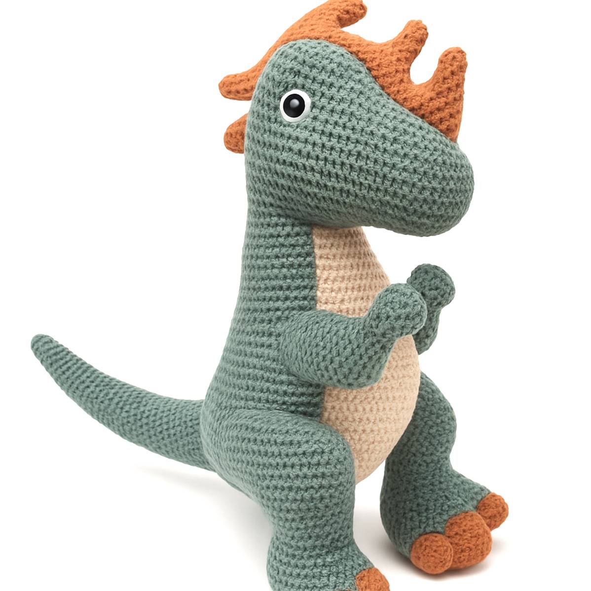 Ce dinosaure bleu séduit grâce à sa crête orange lumineuse et son design amical qui plaît autant aux enfants qu’aux adultes. Sa texture douce et moelleuse invite aux câlins, tandis que ses finitions soignées lui donnent un charme unique.