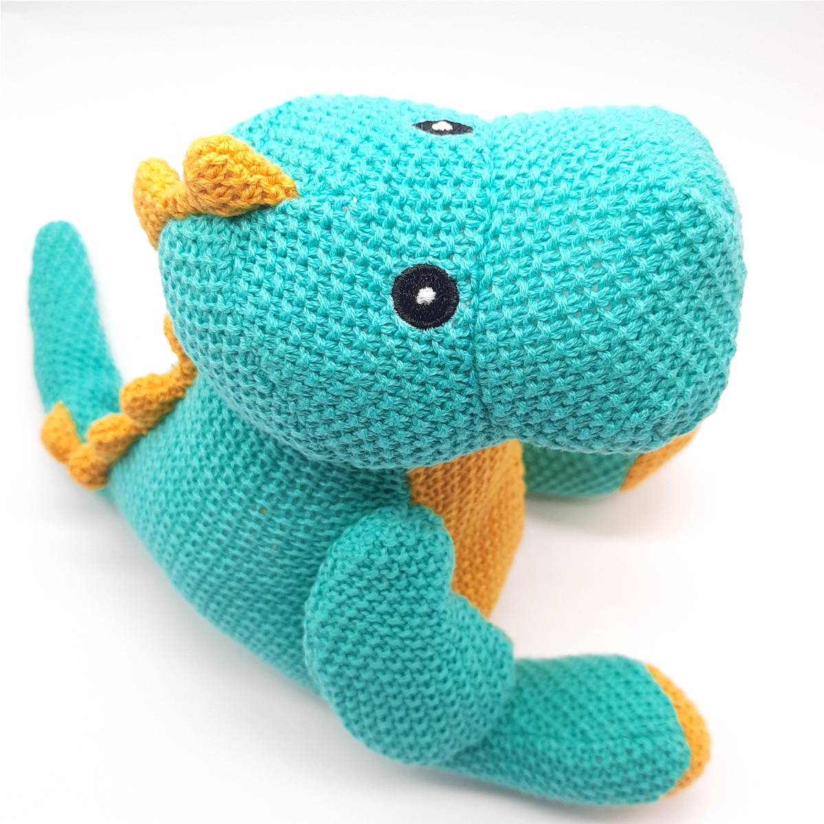 Ce dinosaure turquoise charme instantanément grâce à son look tendre, ses couleurs apaisantes et sa douceur enveloppante.
