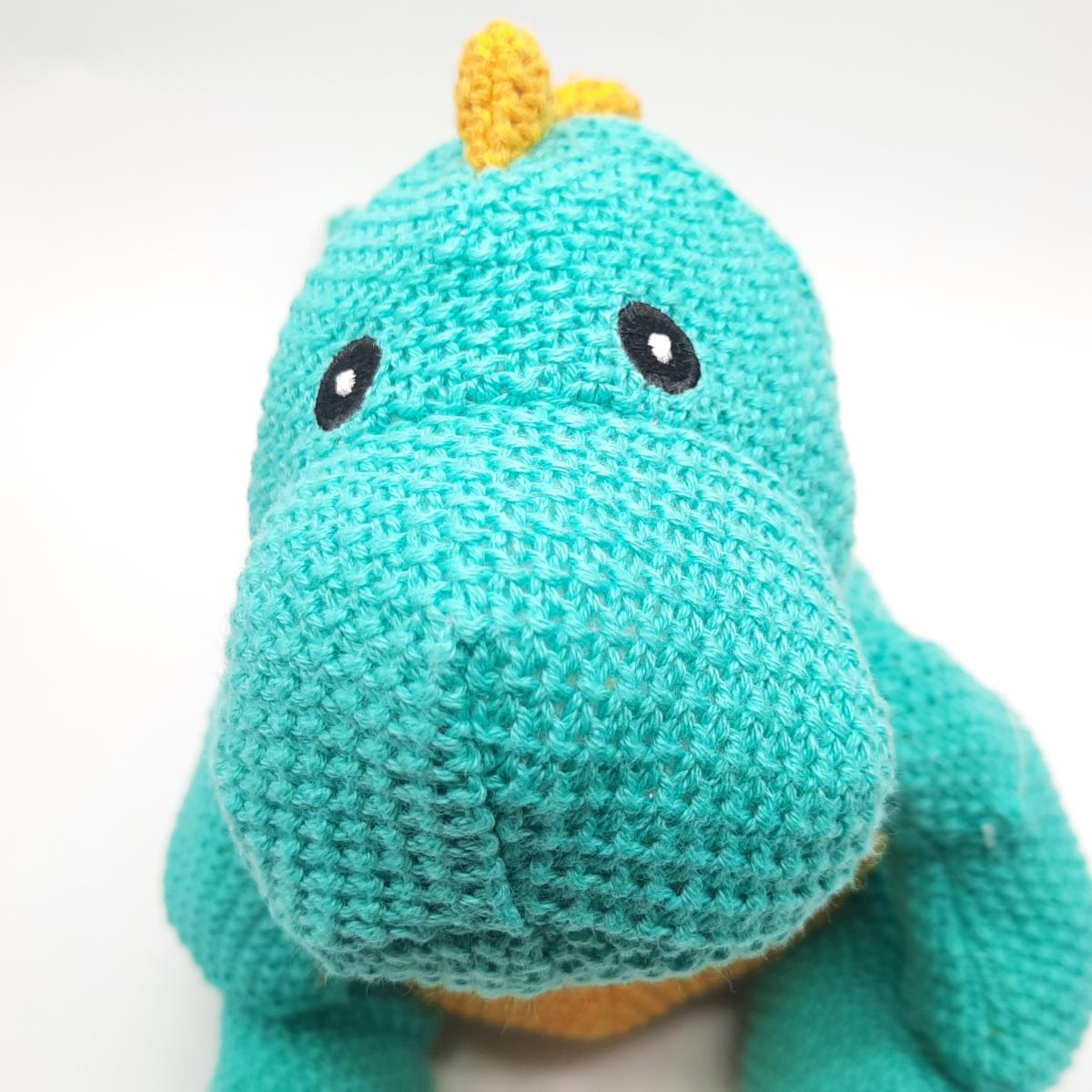 Un dinosaure turquoise adorable, doux et rassurant, parfait pour petits et grands.