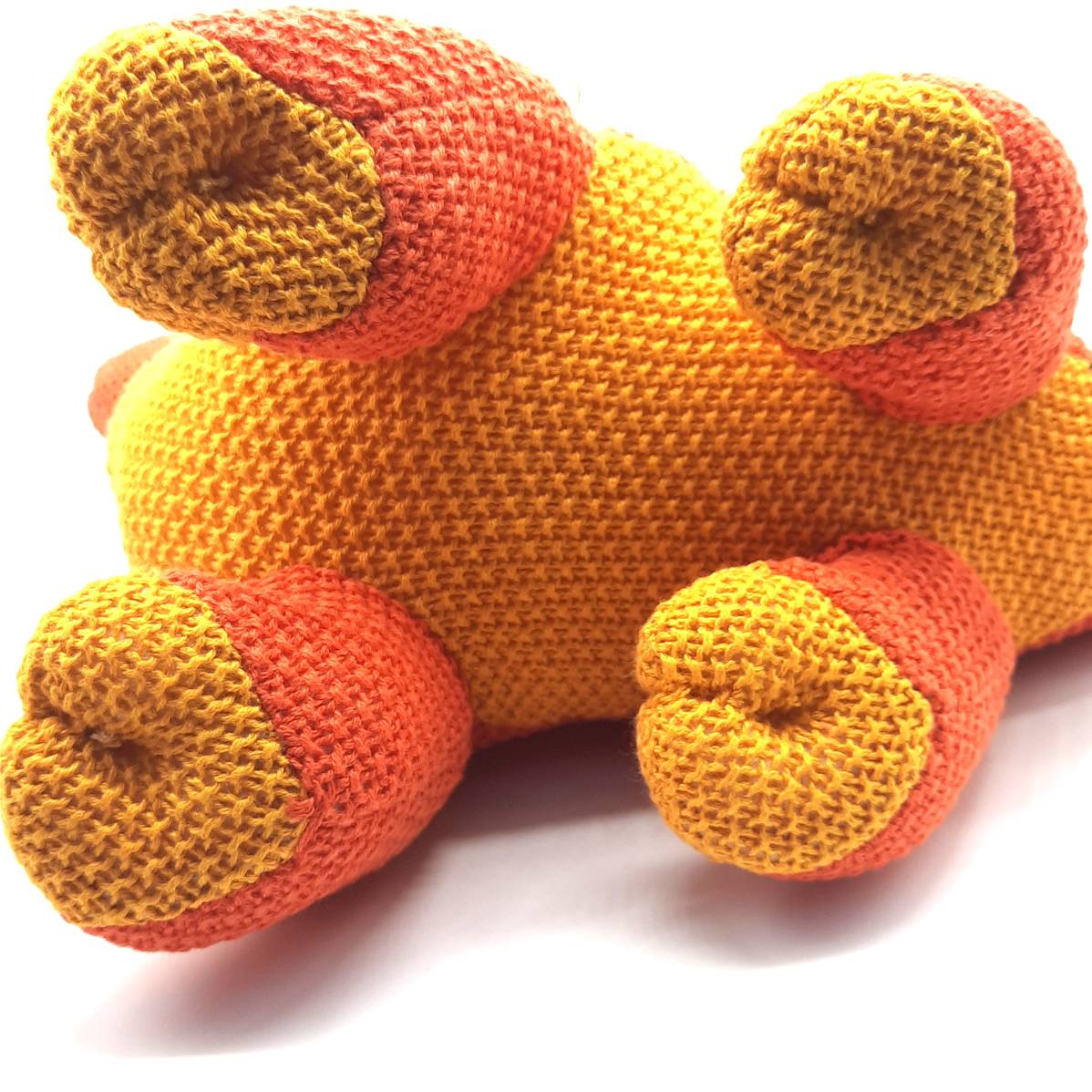 Ce diplodocus orange séduit par son adorable texture crochet qui lui donne un charme artisanal et chaleureux. Conçu dans un tissu moelleux et travaillé, il offre un toucher doux et rassurant tout en apportant une vraie touche d’originalité.