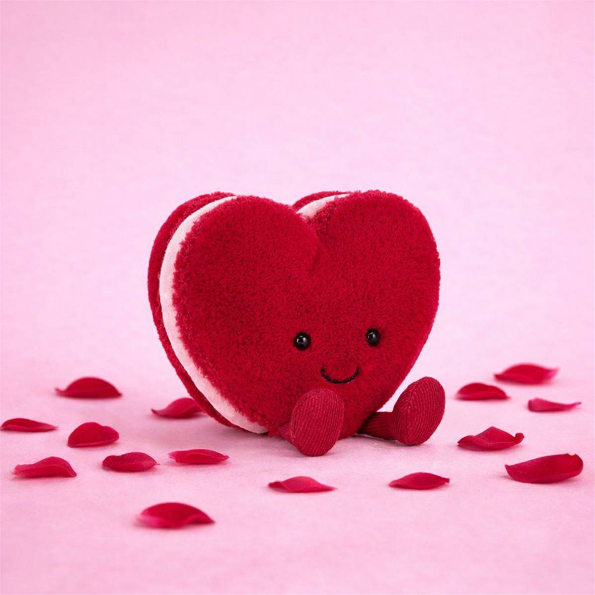 Cette peluche Macaron Cœur rouge Arlette revisite l’icône de la gourmandise française avec intensité et tendresse. Sa teinte rouge profonde, son toucher velours et son petit sourire discret en font un symbole d’amour sincère et chaleureux, parfait pour la Saint-Valentin.