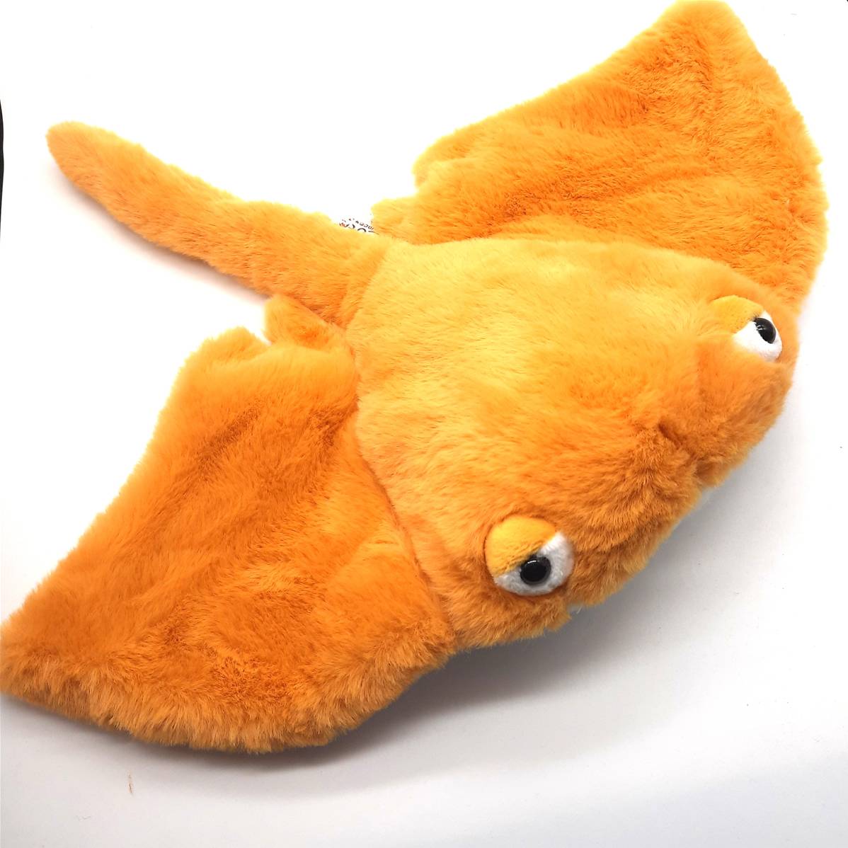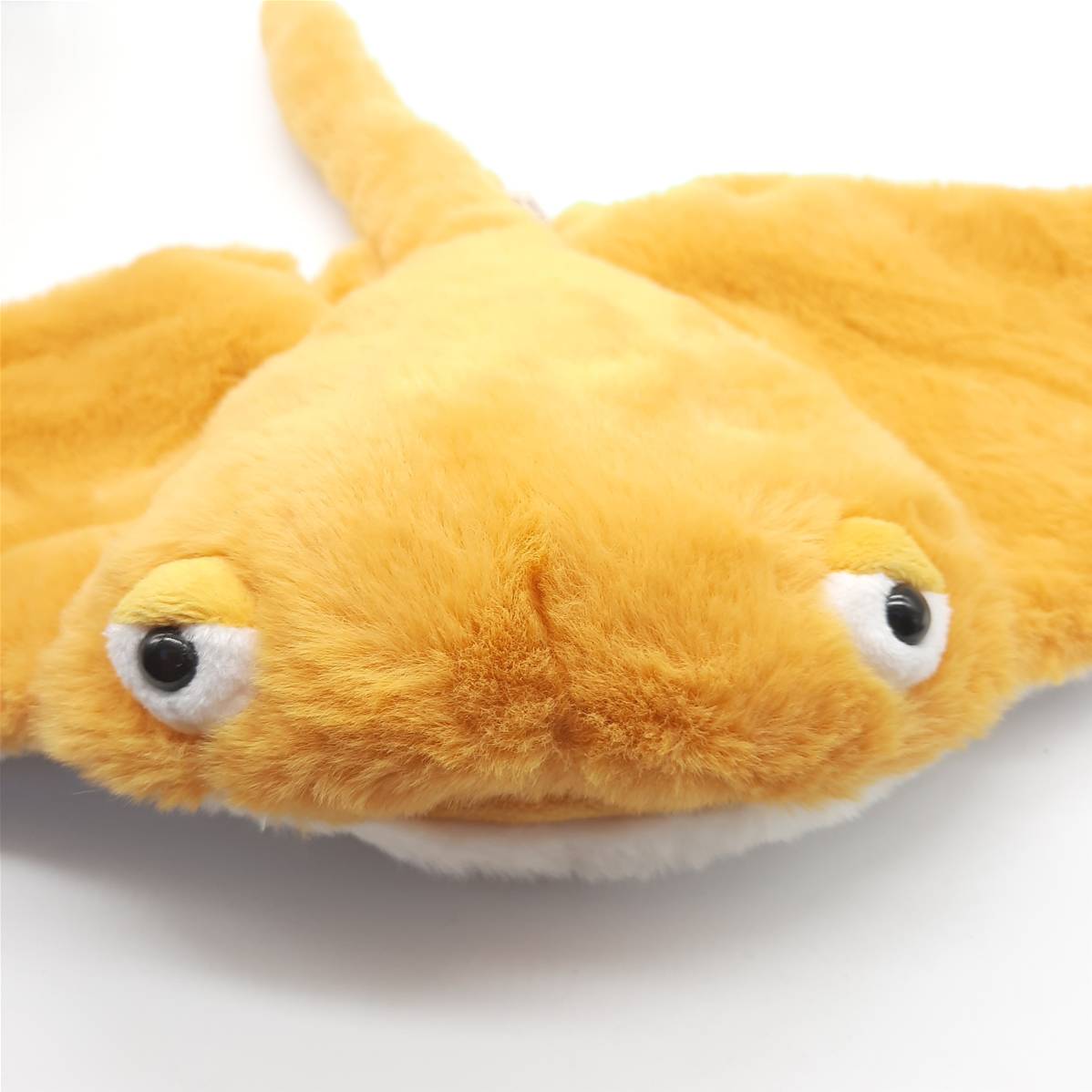 Cette peluche raie manta jaune séduit par sa douceur exceptionnelle et ses larges ailes moelleuses qui donnent envie de la câliner sans modération.