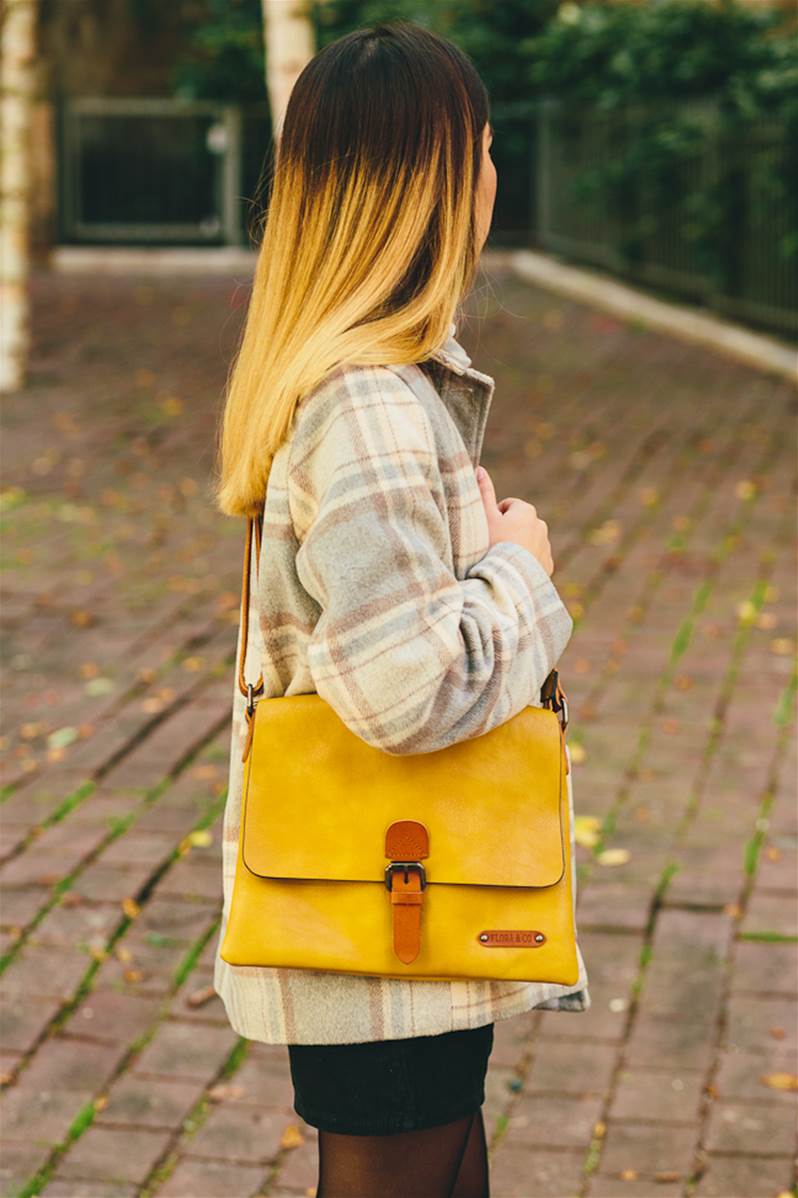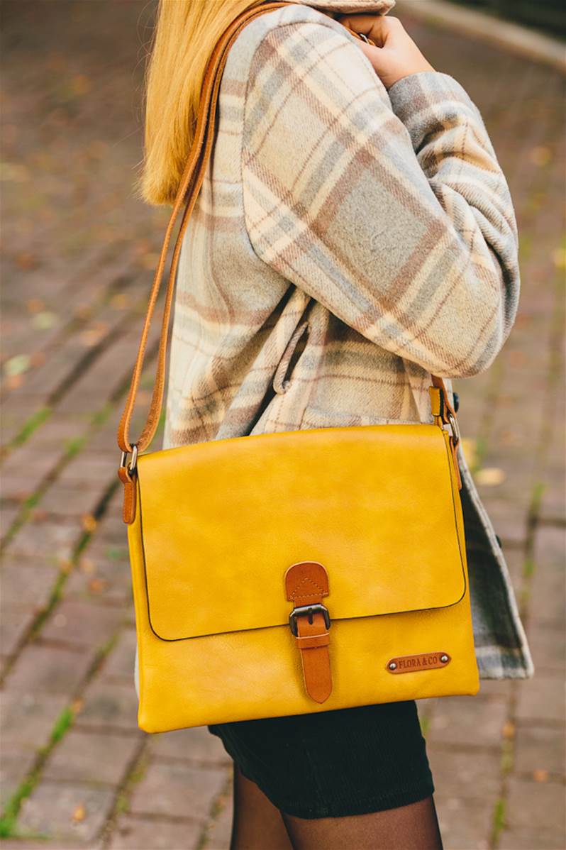 Sac à main besace bandoulière carré jaune 26x30cm