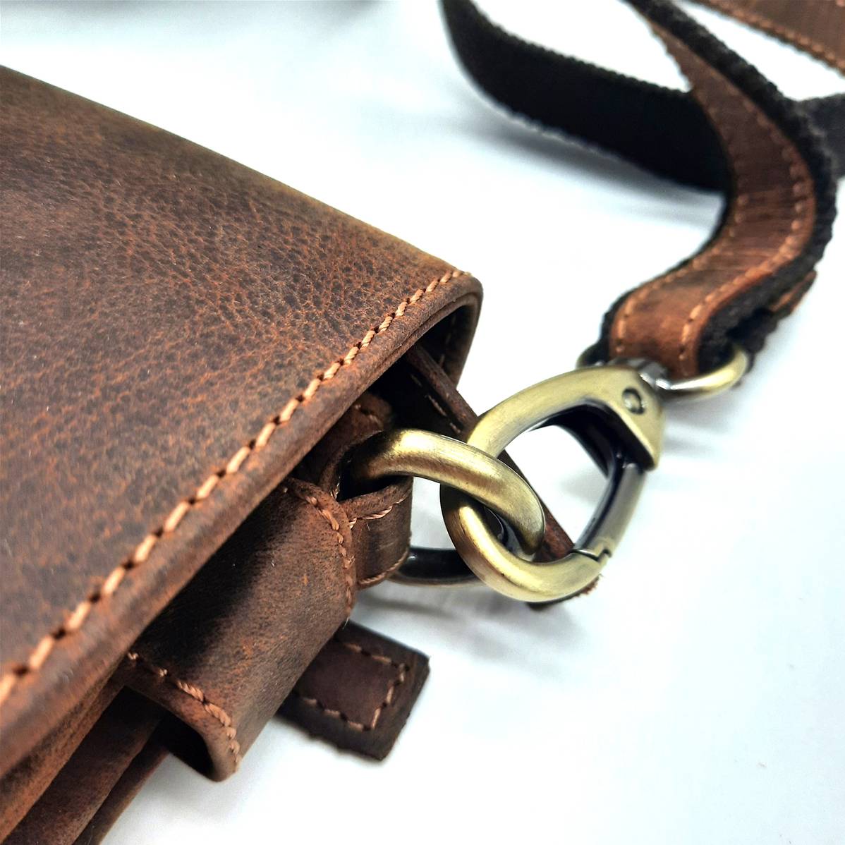 Fermetures métalliques robustes, de style vintage, parfaitement adaptées au cuir épais de buffle.
