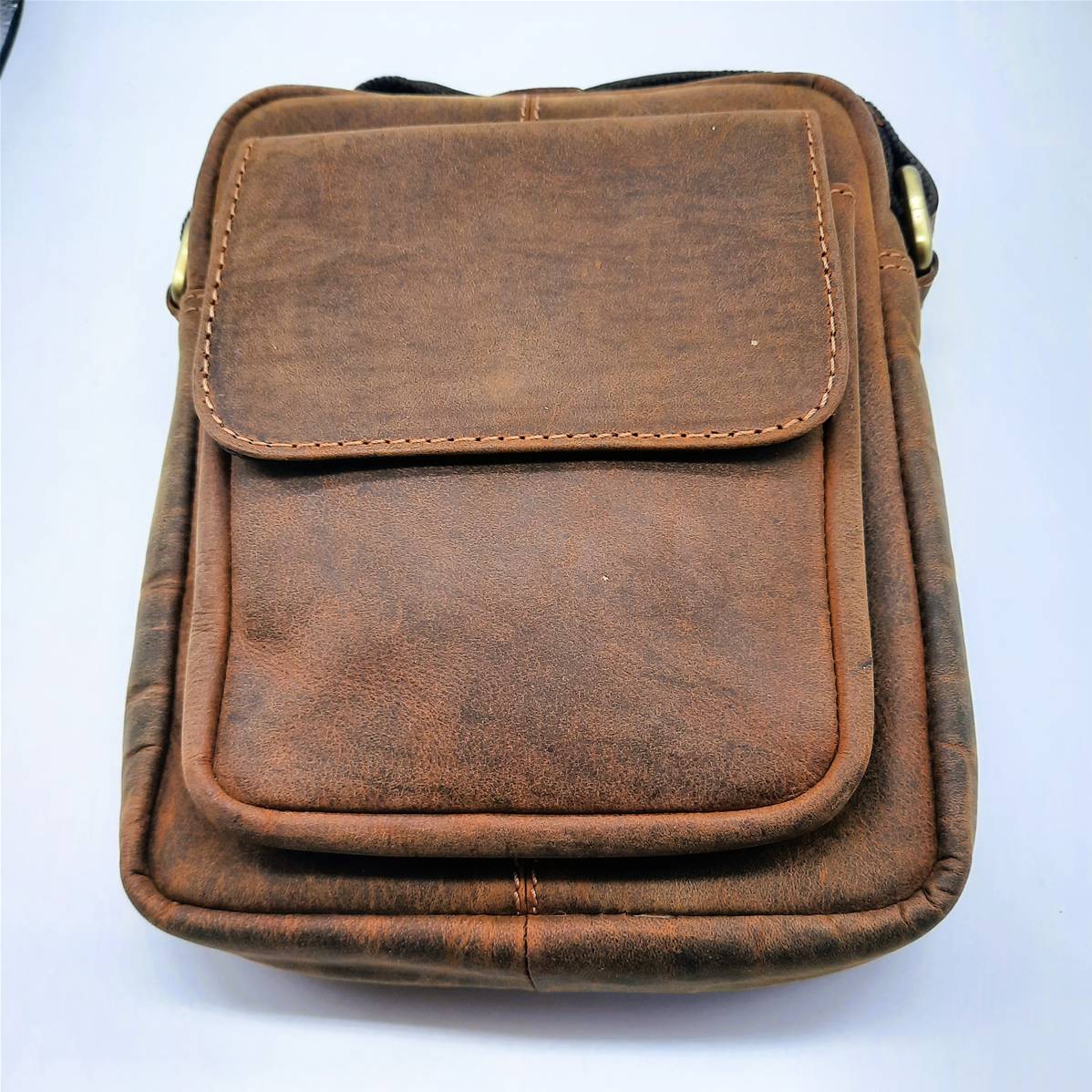 Sac bandoulière masculin en cuir de buffle véritable, robuste et fonctionnel, idéal pour le quotidien.