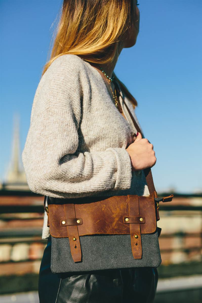 Sac pochette coton et cuir à porter sur l'épaule. Souples, pratiques et légères, ces sacs sont parfaits pour transporter vos affaires pour aller en ville, en voyage.