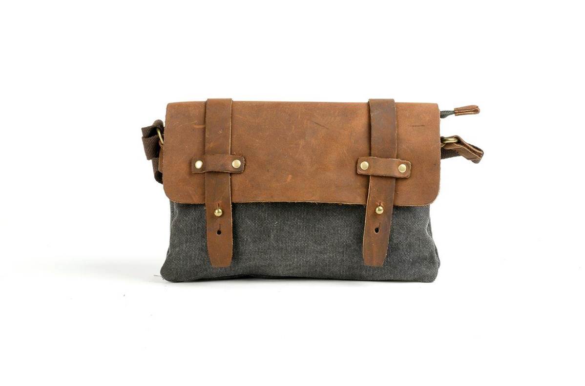 Disponible en rouge, noir, kaki, moutarde, bleu clair.Sac pochette besace bandoulière cuir et coton noir.