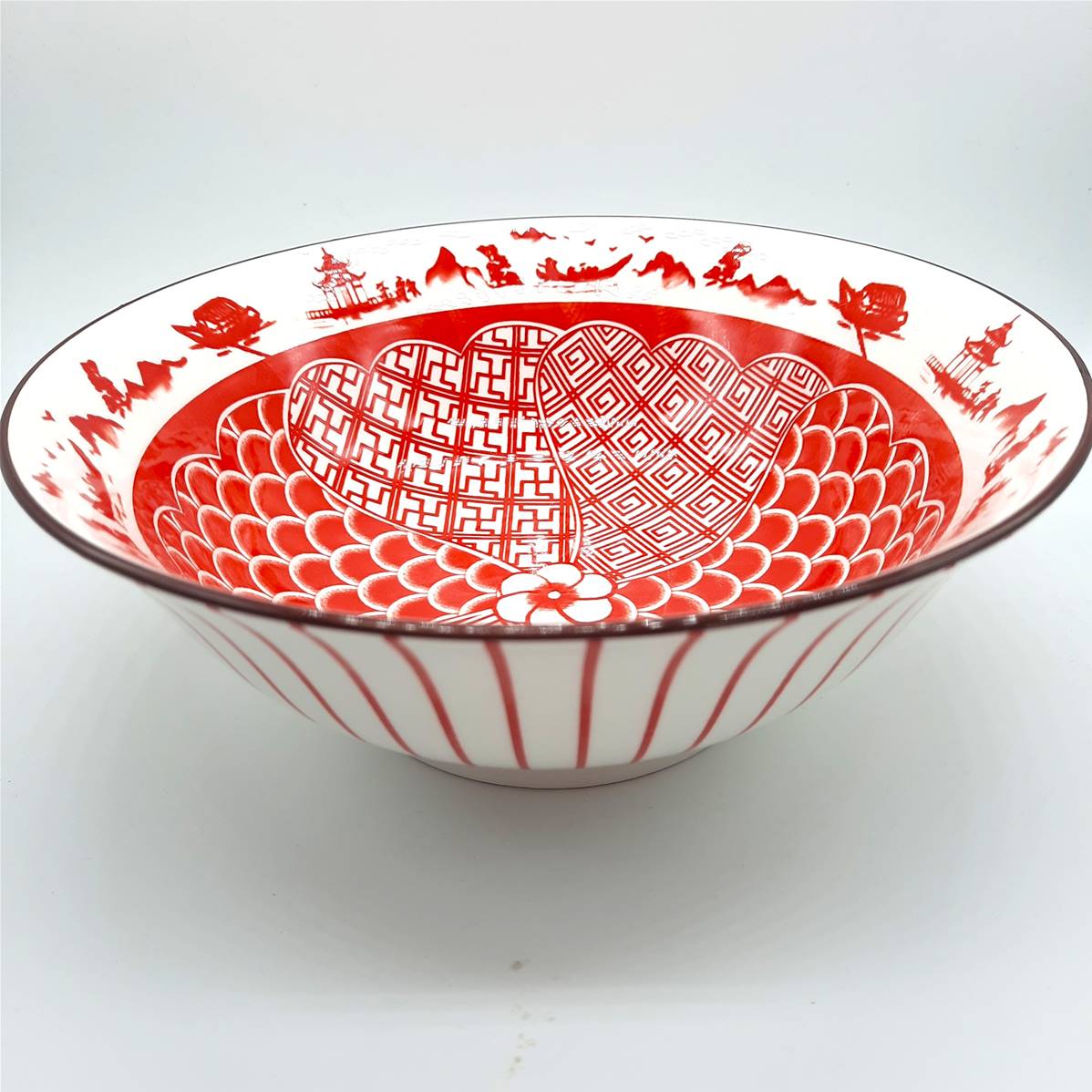 Saladier bord paysages rouges “Shanghai” 21 cm – Décor asiatique raffiné et symbolique
