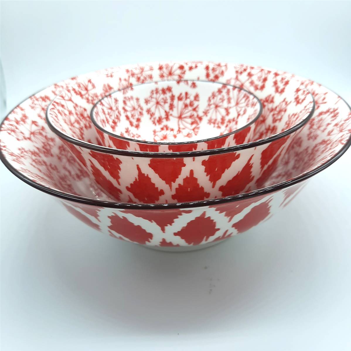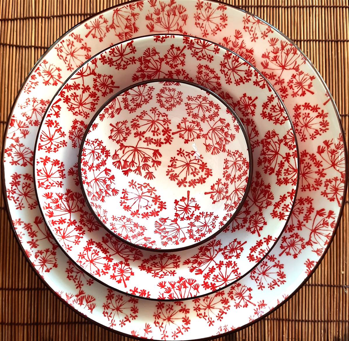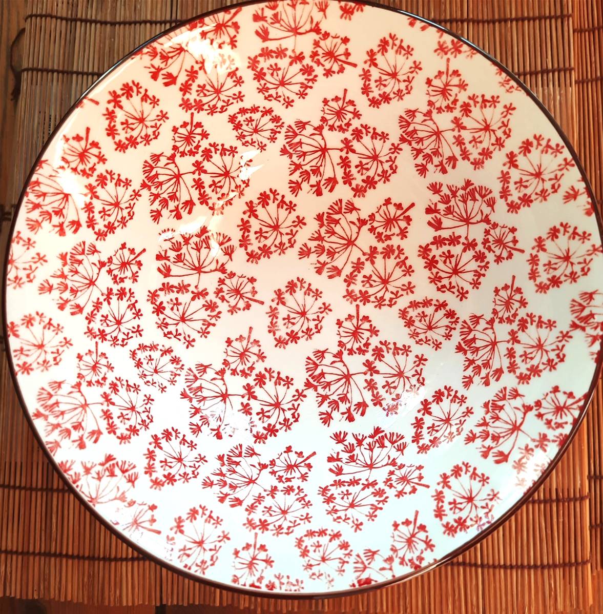 Saladier Fleurs des vents rouges “Shanghai” 21 cm – Motif poétique et géométrique
