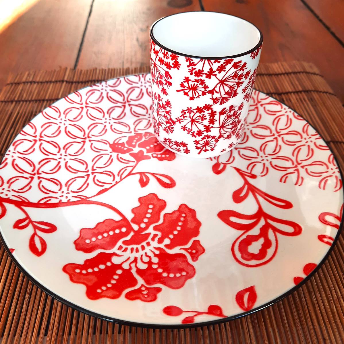 Composez une table pleine de charme et d’exotisme avec ce set de 3 assiettes “Shanghai” rouges et blanches, au design inspiré de l’art asiatique traditionnel.