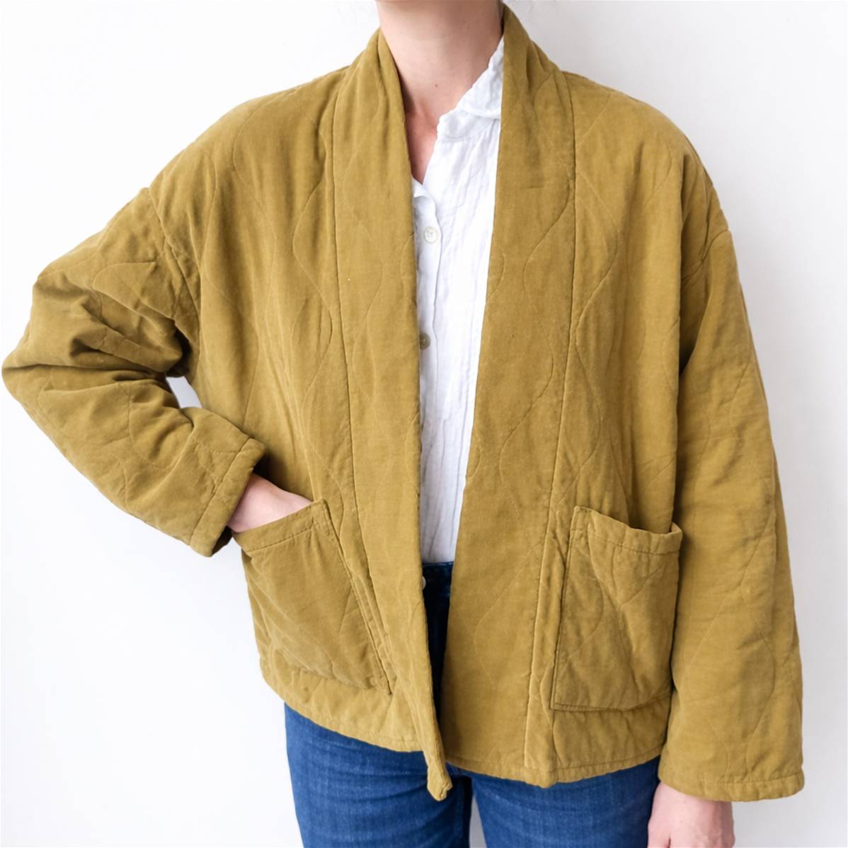 Cette veste matelassée en velours côtelé séduit par son allure chaleureuse et son esprit artisanal.