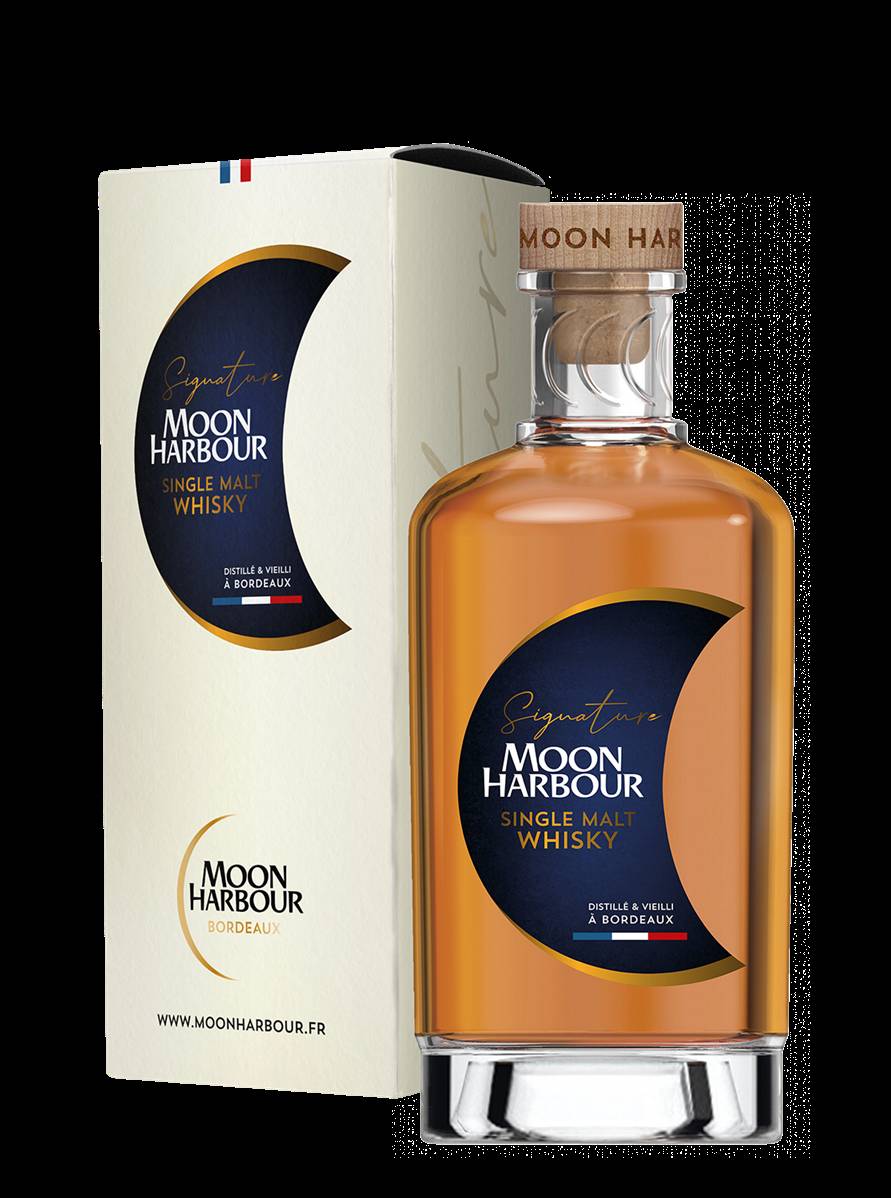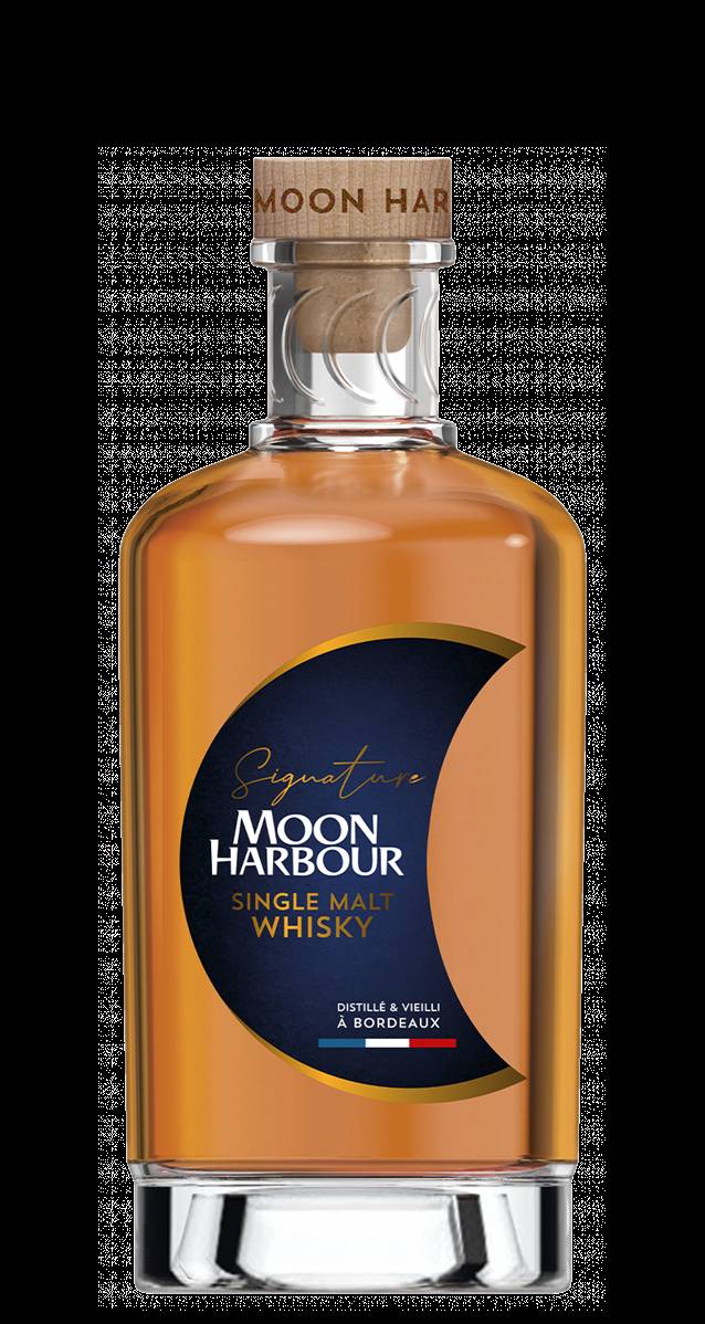 Comme tous les whiskies de la marque, le Signature est vieilli dans des barriques de vins bordelais pendant 3 ans. Moon Harbour a donné carte blanche à ses maîtres de chai pour assembler ses meilleures barriques, toutes appellations confondues : Sauternes, Pessac Léognan ou encore Saint-Emilion afin de vous offrir un single malt qui vous surprendra par son équilibre et sa douceur.